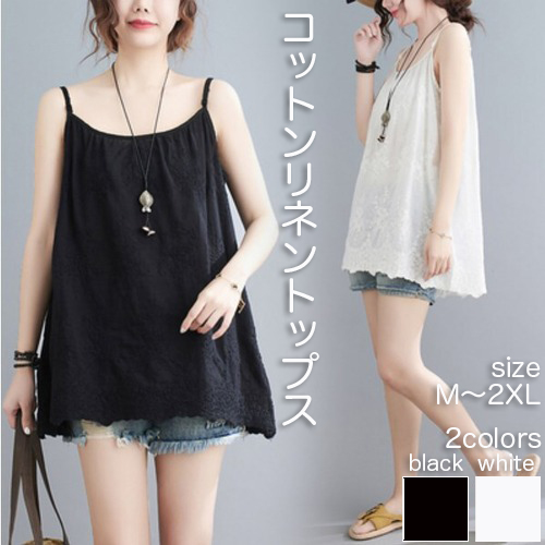 トップス レディース キャミソール チュニック キャミ 重ね着 夏 刺繍 白 黒 2色展開 イベント 休日 お出かけ デート コーデ 普段使い 海 リゾート旅行 お洒落 ガーリー カジュ 着回し楽ちん