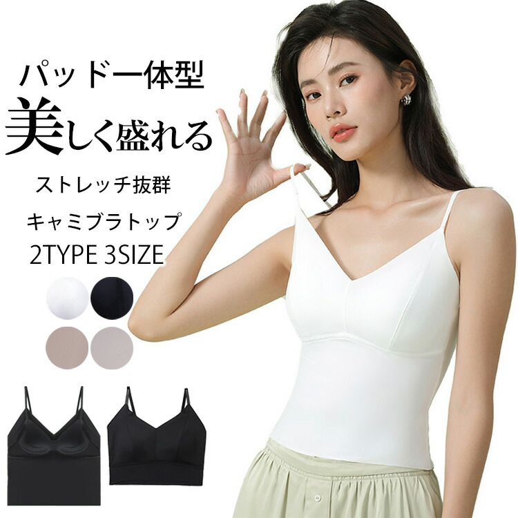 選べる丈感 キャミブラトップ パッド一体型 冷感 ブラトップ インナー パッド付き 美しく盛れる 楽々 盛れる 盛り 谷間メイク レディース ストレッチ抜群 伸縮性 通気性 シンプ 調節可能