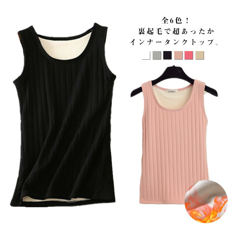 タンクトップ 裏起毛 トップス ノースリーブ レディース リブ インナー 無地 肌着 ストレッチ あったか 秋冬物 着痩せ 体型カバー 防寒