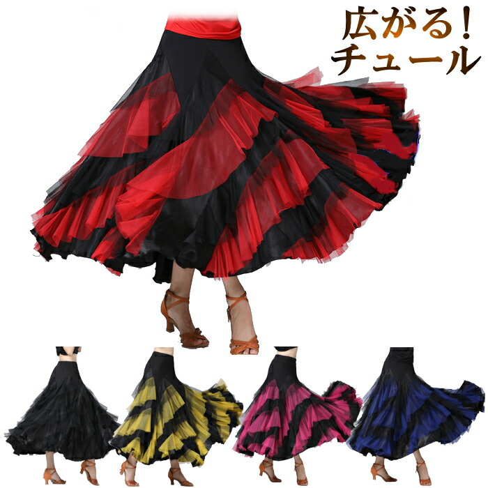 ダンス衣装 スカート チュールスカート 社交ダンス フラメンコ ラテンドレス ヒップホップ モダンドレス タンゴ ダンス ロング ボリュームアップ ペチコート ステージ衣装 ドレス ロングパニ パニエ