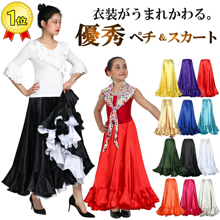 ダンス衣装 スカート ロングスカート サテンスカート フレアスカート ファルダ ペチコート パニエ フラメンコ衣装 ベリーダンス ラテンダンス ヒップホップ マキシ丈 ロング 社交ダンス