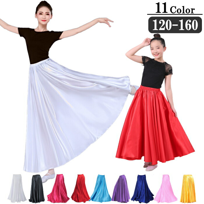 広がる 全円 スカート ダンス衣装 ロング ダンス 軽やか サテン サーキュラースカート ロングスカート ペチコート コンテンポラリー レディース キッズ ペチスカート 衣装 ヒップホップ 社 パニエ