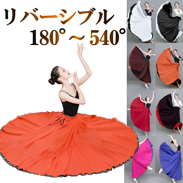 スカート ダンス衣装 ロングスカート リバーシブル 720度 全円 シフォン マキシ丈 社交ダンス ベリーダンス 衣装 ヒップホップ コーラス エレクトーン 広がる サーキュラースカート ミカド 大人