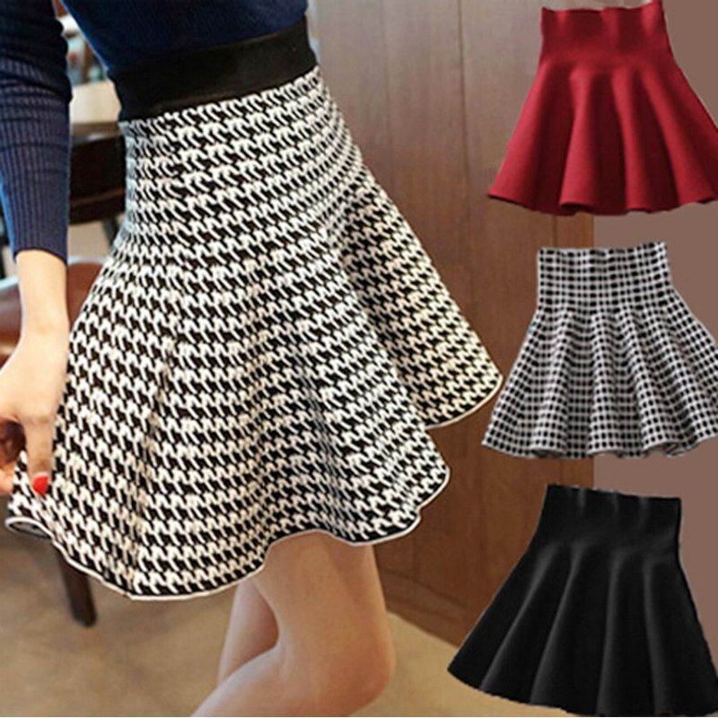 スカート レディース ハイウエスト ガーリー モード系 大人 可愛い かっこいい セクシー 10代 40代 50代 オシャレ ミニスカート ひざ上 千鳥柄 ブラック グレー 春 夏 レッド
