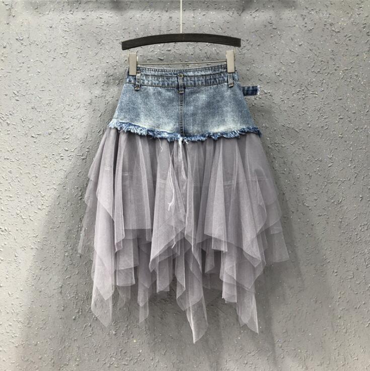 デニムスカート チュールスカート レディーススカート 切り替え ハイウエスト スカート ジャズダンス 個性的 欧米風 バンド クール チュール付き 舞台衣装 舞台衣裳