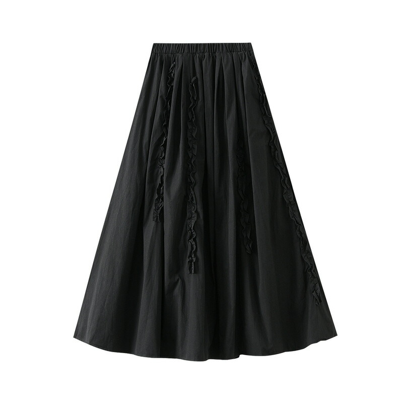 レディーススカート Aラインスカート シンプル 無地 エレガント ポケット付き 春夏秋スカート フリルスカート マキシ丈スカート ロング 団体服 体型カバー 81cm 4色 ブラック 黒 白 ピンク