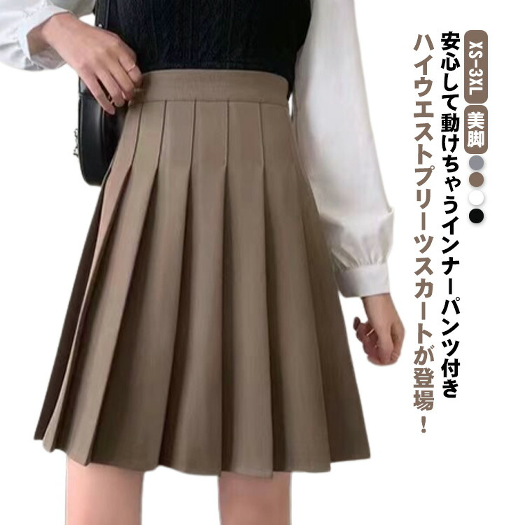 レディース フレアスカート ハイウエストスカート ミディアム プリーツスカート ショート丈 ミニスカート インナーパンツ付き Aライン 美脚 無地 大人 春夏秋冬 ひざ上 きれいめ