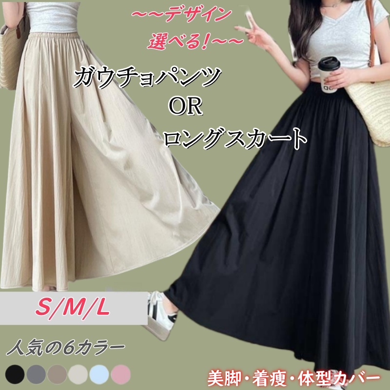 ワイドパンツ レディース きれいめ 涼しい 夏用 ガウチョパンツ スカーチョ ロング マキシ丈 春 秋 体型カバー スカンツ 無地 ズボン ウエストゴム ドレープ 大きいサイズ スカート風