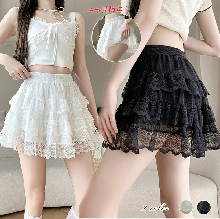 レースミニスカート レディース チラ見防止 大人可愛い レース 透け防止 ゆったり おしゃれ レディース