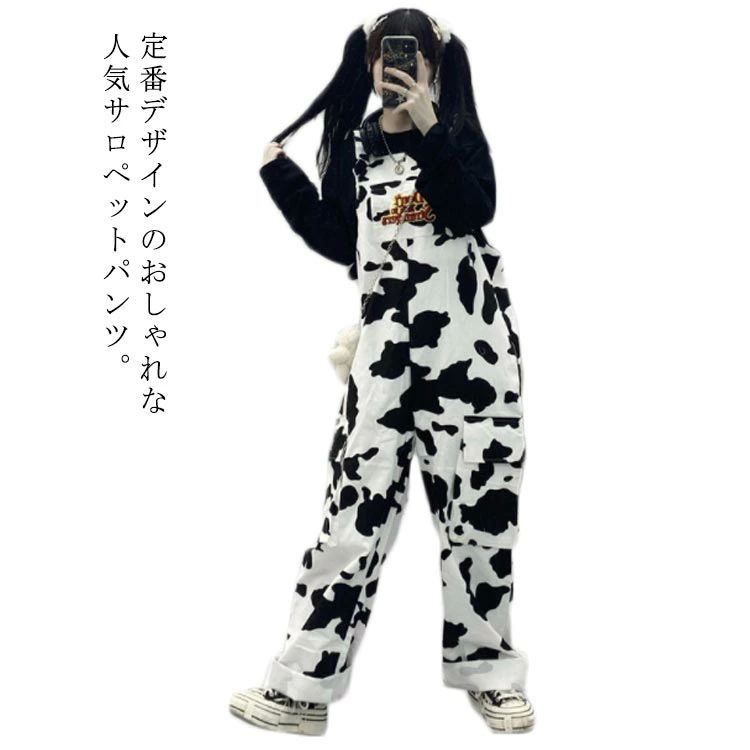 デニムパンツ デニム 大きいサイズ 可愛い 牛柄 レディース オーバーオール カジ オールインワン ゆったり 秋冬 サロペット 春夏