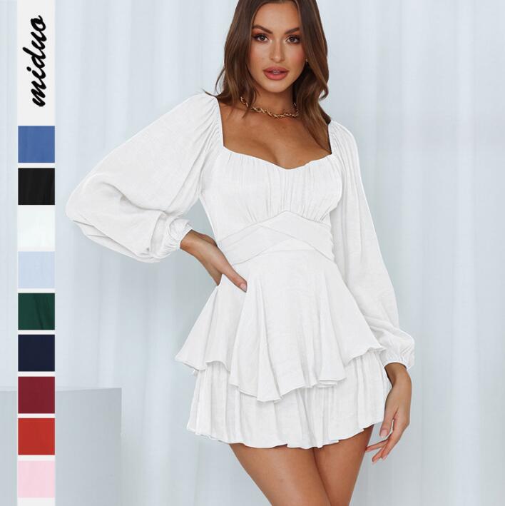 オールインワン レディース キュロット 長袖 スカーパン ショート丈キュロット スカラップ 春服 秋服 欧米風 女性 オールインワン パーフ袖 おしゃれ 4色