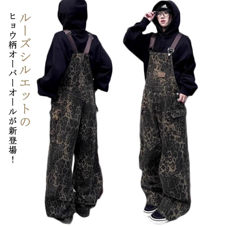 ワイドパンツ レディース ストリート系 サロペット ヒョウ柄 春 ユニセックス つなぎ レオパード カーゴパンツ 大きいサイズ オールインワン 冬 夏 韓国ファッション 人気 メンズ 秋