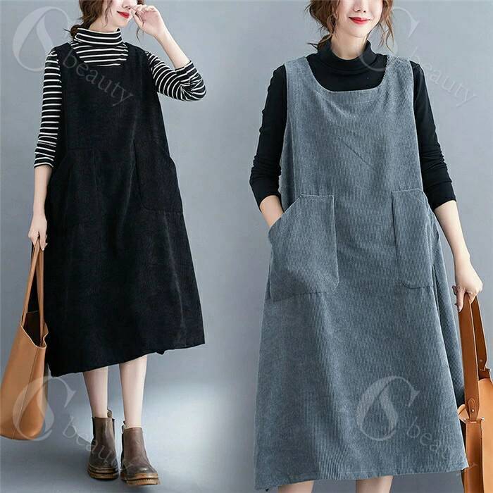 ジャンパースカート 秋 冬 コーデュロイ ロング 大人 秋冬 大きいサイズ お洒落 ワンピース ノースリーブ