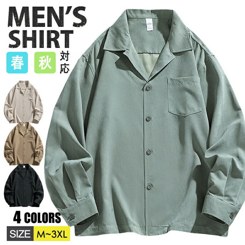 シャツ メンズ オープンカラー シャツジャケット 長袖シャツ 無地 開襟シャツ カジュアルシャツ メンズファッション メンズシャツ ロングスリーブ スーツ襟 春服 秋服 ビジネス 春