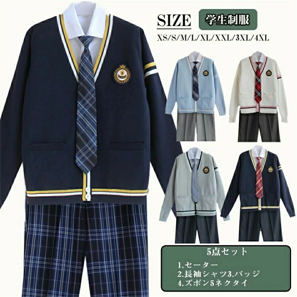 入学準備 カーディガン セーター 高校制服5点セット メンズ 制服 学校 高校生 応援団 学生服 コスチューム 衣装
