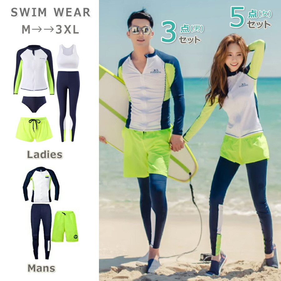 フィットネス水着 水着 レディース ラッシュガード 長袖 体型カバー ペア カップル 大きいサイズ セパレート 上下セット サーフィン ショートパンツ レギンス 露出控えめ ノンワイヤー パッ メンズ