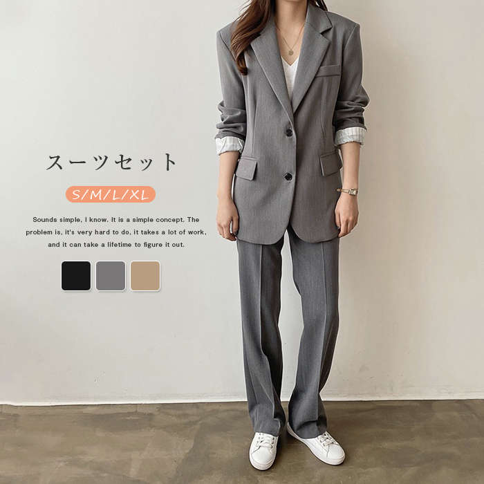 スーツ セットアップ レディース 春秋 洗える 黒 パンツスーツ パンツ ロング タイトパンツ トップス ボトムス セット きれいめ レディーススーツ お呼ばれ フォーマル【2022新作】