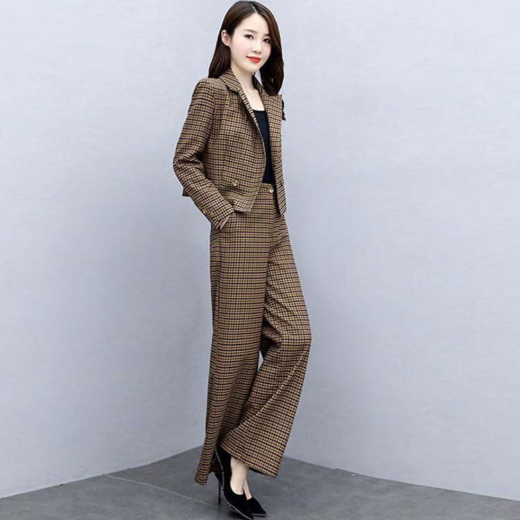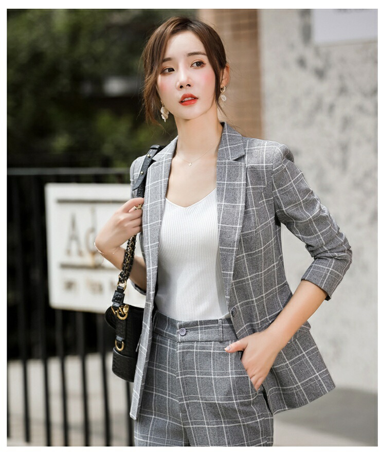 レディーススーツ チェック柄 スリム 通勤スーツ カジュアルスーツ レディース 2点セット ジャケット+パンツ ビジネス オフィス 韓国風 通勤 パンツスーツ セレモニースーツ