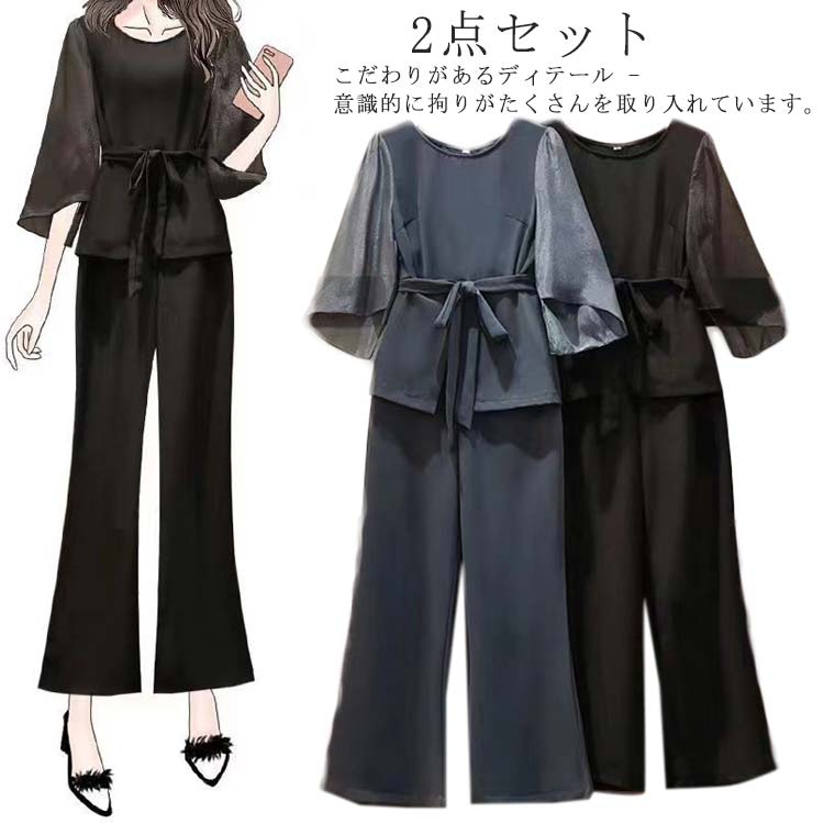 セレモニースーツ レディース パンツ パンツスーツ スーツ フォーマル ブラックフォーマル ママスーツ 入学式 オールインワン ママ 結婚式 卒業式 2点セット セットアップ 黒