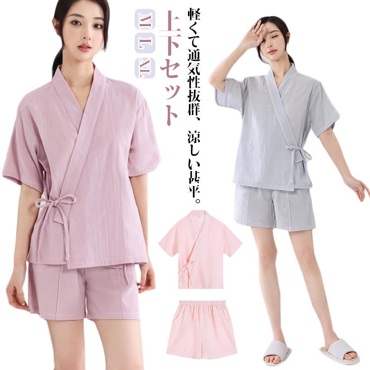 セットアップ 上下セット 甚平 送料無料 パジャマ 涼 寝巻き 無地 浴衣 ルームウェア 普段着 ダブルガーゼ 和服 夏物 涼しい 着物
