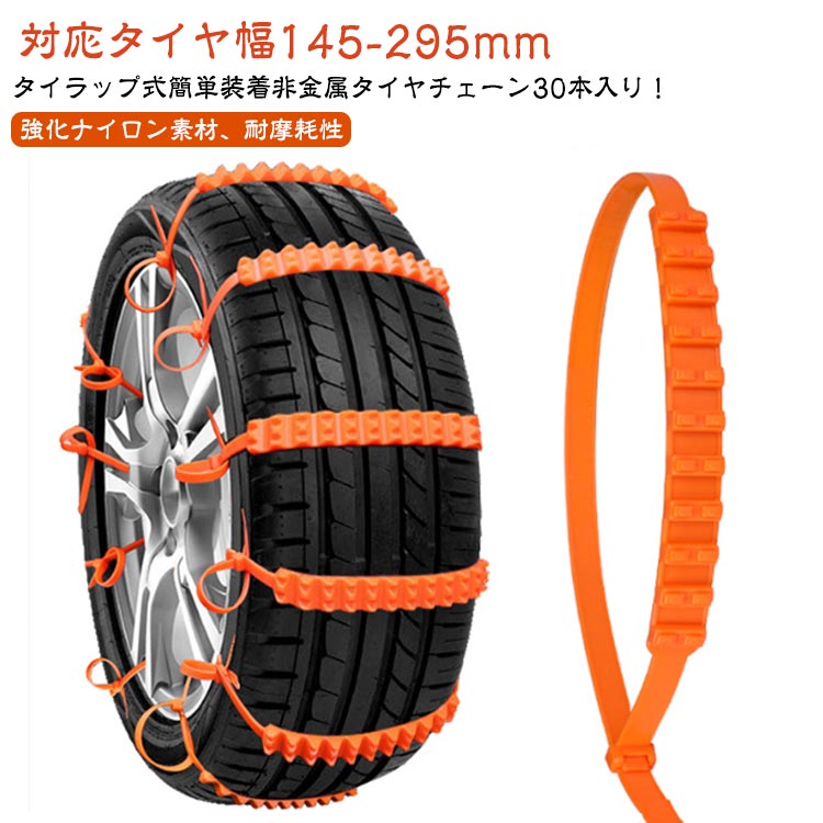滑り止めチェーン 簡単 簡単装着 タイヤチェーン 30本入 ナイロン製 雪道 非金属 凍結 ジャッキアップ不要 車用 車用チェーン ホイールチェーン 結束バンド 使い捨て 緊急用 汎用