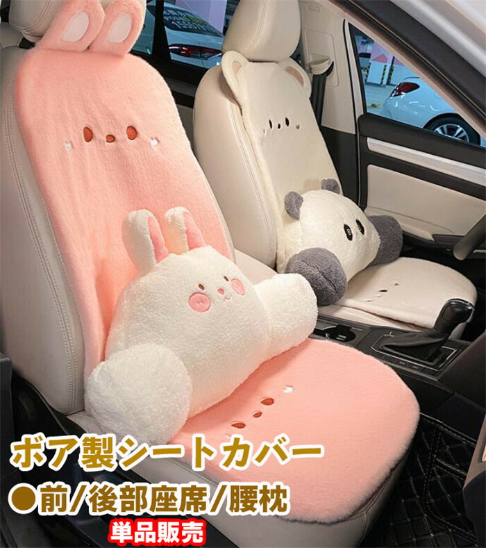 シートカバー 座席カバー 背マット 車座布団 車イスカバー クマ柄 ウサギ柄 ボア 通気 可愛い 暖かい ふわふわ 秋冬 運転席 助手席 前部座席 後部座席 腰枕 腰クッション 春 秋 冬 四季 夏
