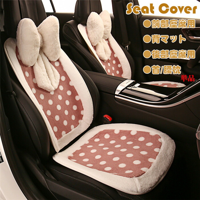 シートカバー 座席カバー 背マット 車座布団 車イスカバー ボア ドット柄 通気 暖かい 可愛い 運転席 助手席 前部座席 後部座席 腰クッション 腰枕 首クッション 首枕 夏 秋 冬 春