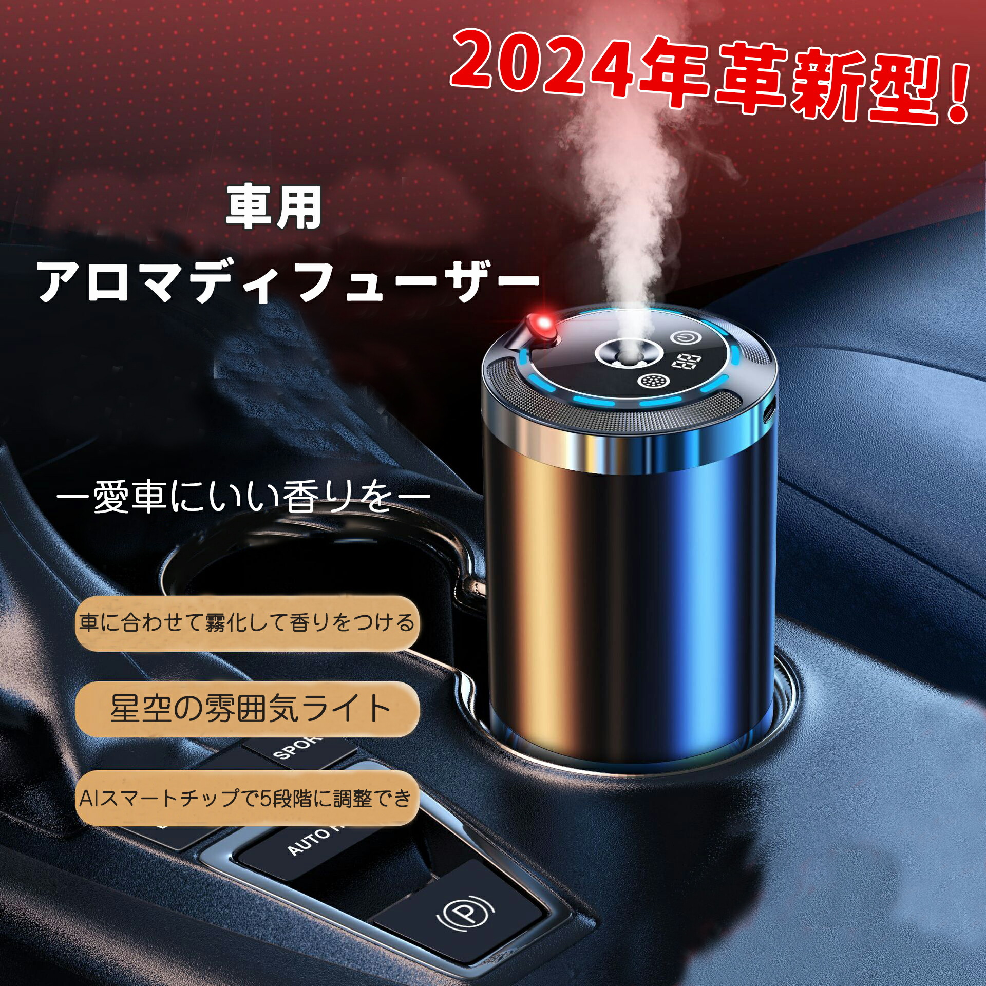 アロマディフューザー 車用 小型 コードレス アロマ 水なし コンパクト ネブライザー式 精油 静音 おしゃれ 車 長持ち 芳香剤 電源式 充電式 噴霧式 5段階調整 軽量 車起動後自動O 3段階調整