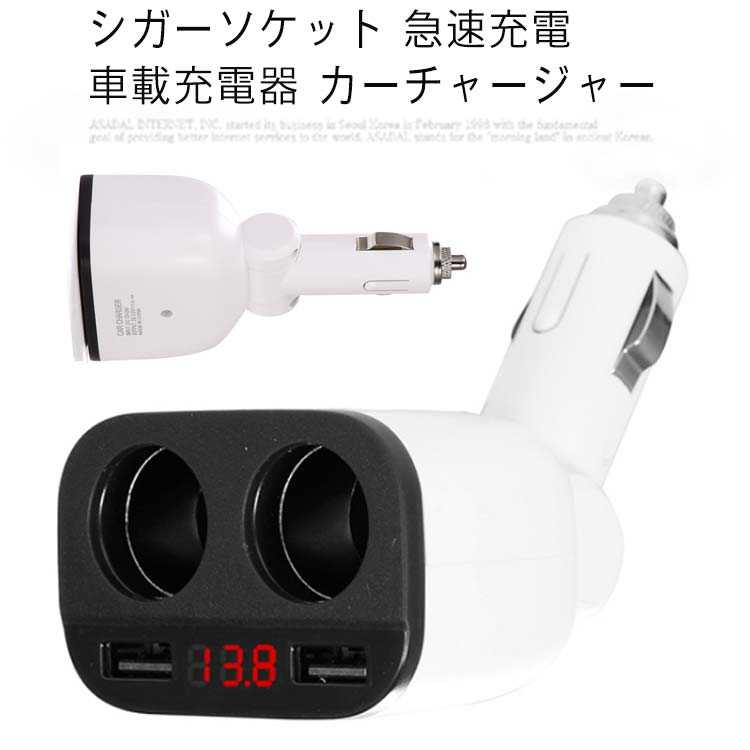 シガーソケット 急速充電 車載充電器 2ポート付き