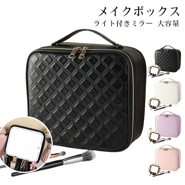 メイクボックス ライト付きミラー 大容量 コスメボックス メイクブラシバッグ 化粧ポーチ コスメポーチ メイクポーチ 手提げ式