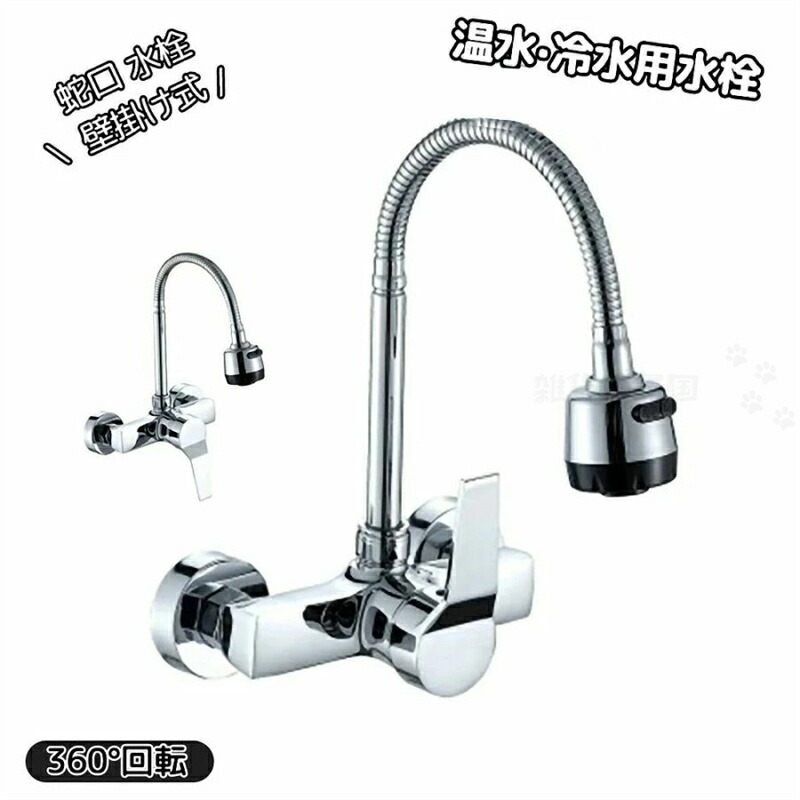蛇口 水栓 キッチン シャワー水栓 水道蛇口 ランドリーシンク キッチン水栓 シンク 壁掛け式 温水 冷水用水栓 360°回転 シングルレバー