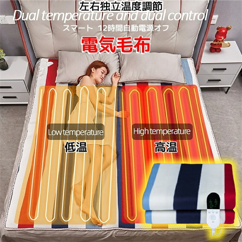 電気敷毛布 電気毛布 敷き電気毛布 シングル ダブル 電気しき毛布 過熱防止 省エネ 寒さ対策 スマート 12時間自動電源オフ 左右独立温度調節 150*80 150*120 180*150 200*180