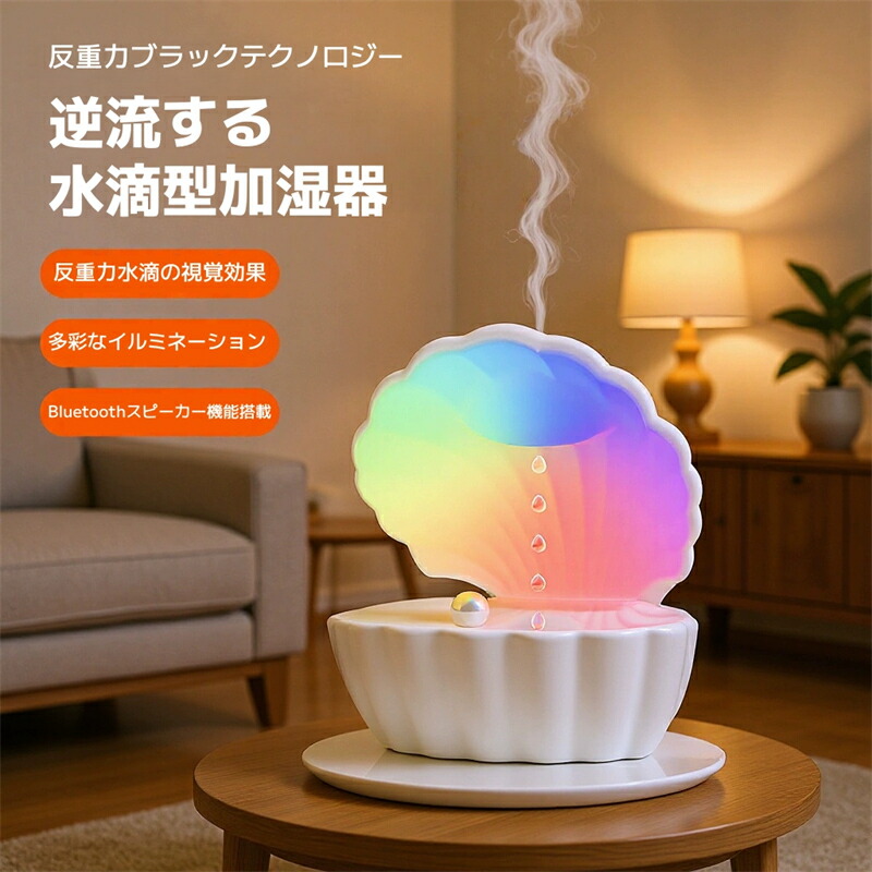 加湿器 卓上加湿器 bluetoothスピーカー 貝殻型 超音波加湿器 小型 加湿機 上部給水 卓上 静音 お手入れ簡単 おしゃれ オフィス 大容量 強力加湿 反重力 アンチグラ 上から給水