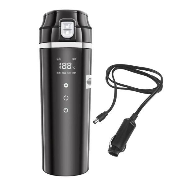 車載用ポット 車載電気ケトル 12V 24V カーポット 車載 カップ 温度表示 304ステンレス鋼 旅行暖房マグカップ 魔法瓶 車用湯沸かし器 旅行用 携帯便利 黒 車中泊