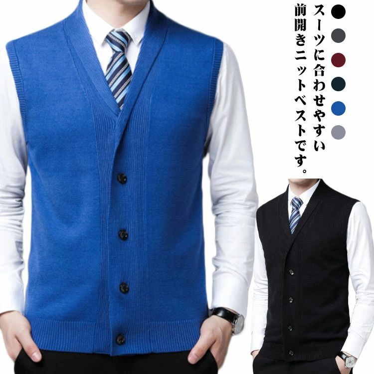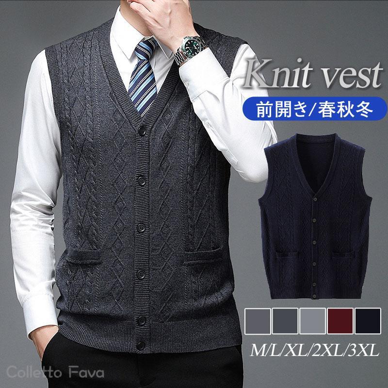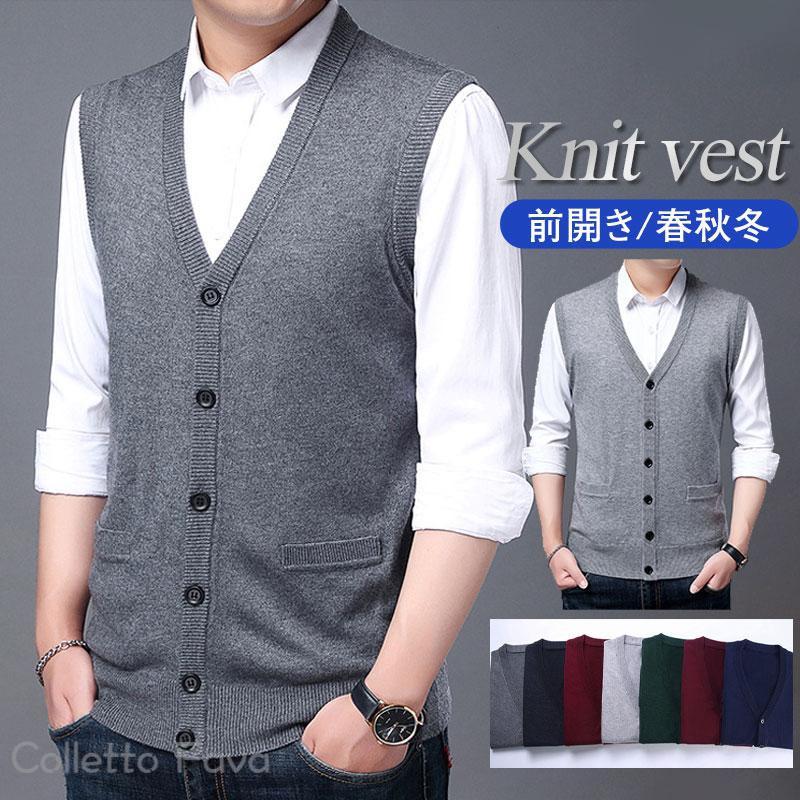 ベスト メンズ ニット ジレ 前開き Vネック 秋 冬 春 チョッキ ビジネス 暖かい インナー 防寒着 トップス 通勤 通学 カジュアル オフィス