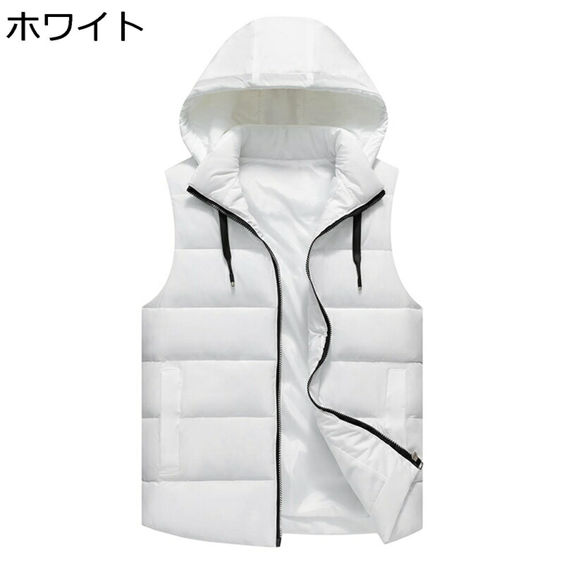 メンズ ベスト ダウン 秋冬 無地 フード付き ホワイト 3 防寒対策 保温 防風 おしゃれ 中綿ベスト 軽量 コンパクト収納 カジュアル インナーベスト 冬服 登山 アウトドア インナーダウン