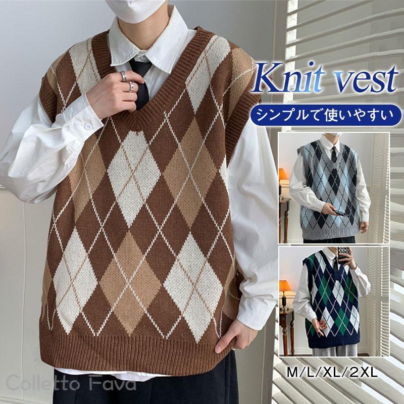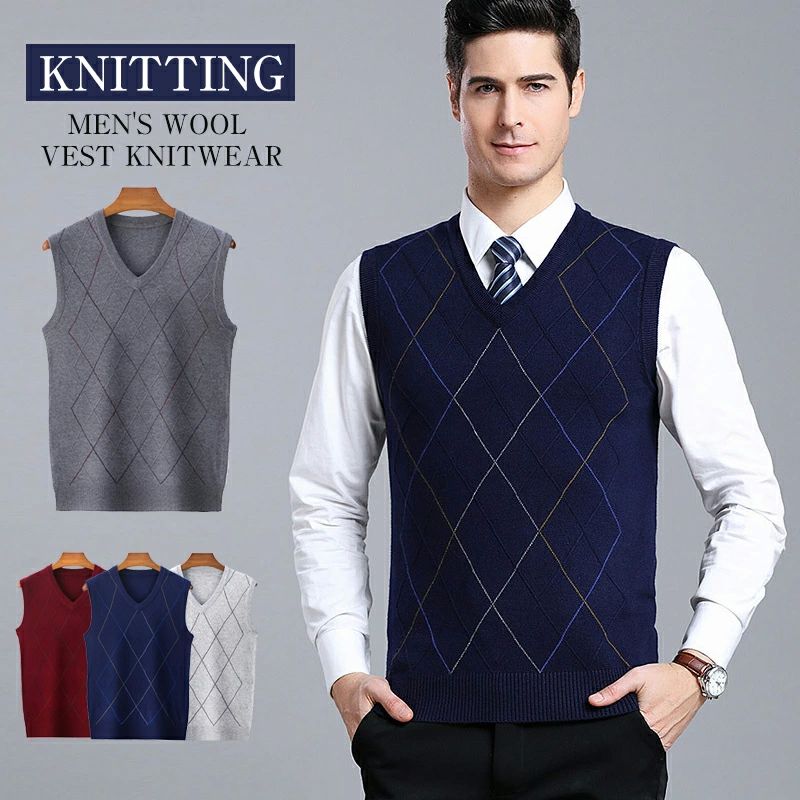 暖 秋冬 セーター アウター 洗える 菱形 大きいサイズ 重ね着 冬 春秋 Vネックベスト ビジネス Vネック メンズ ベスト ダイヤ柄