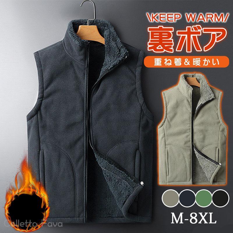 ベスト メンズ 前開き 裏ボア 裏起毛 暖かい 室内着 インナー 防寒着 トップス ジレ 保温 冬 厚手 アウトドア 父の日 プレゼント 防風