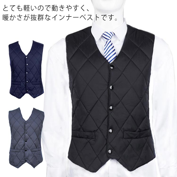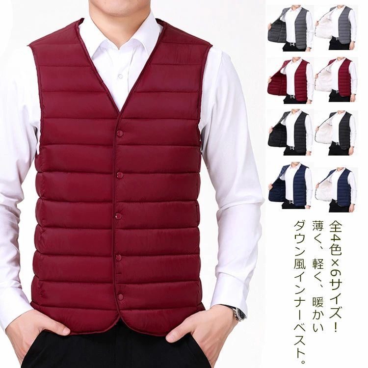 中綿ベスト メンズ ダウン風 インナーベスト 軽量 暖かい