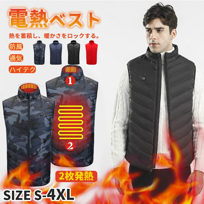 発熱ベスト メンズ 電熱ベスト ヒートベスト 加熱ベスト ヒーターベスト 電熱ジャケット 温熱ベスト 電気ベスト 電熱ウェア ベスト 防寒 USB加熱 2段温度 加熱パネル2枚 釣り 通勤 通学 登山