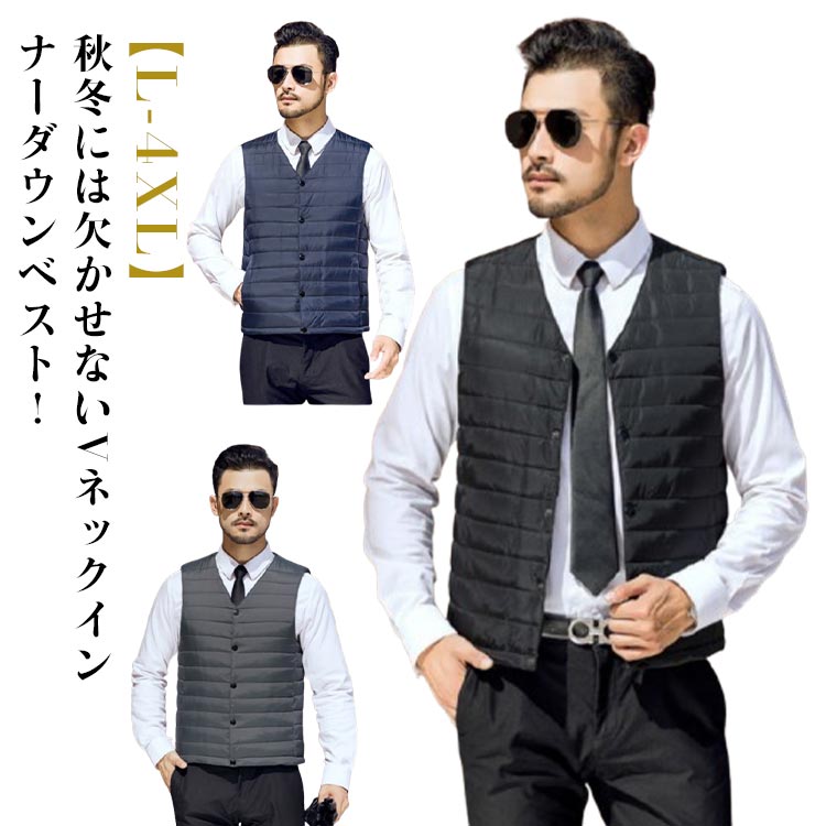 ベスト メンズ 中綿 インナーダウン ダウンジャケット ライトダウン Vネック ダウン ジレ ダウンベスト 軽い 軽量 保温 インナーベスト 秋冬 防寒 スリム 大きいサイズ 暖かい
