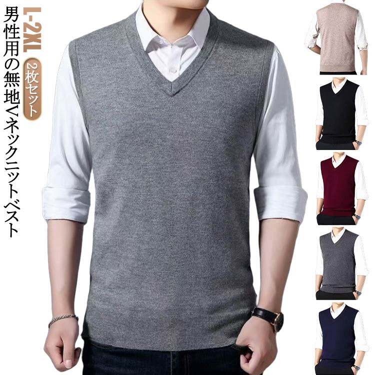 フォーマル 夏用 ネイビー ベスト トップス セーター メンズ プルオーバー 黒 ショート丈 ニット ニットベスト 2枚組 無地 シンプル 大きい ニットセーター