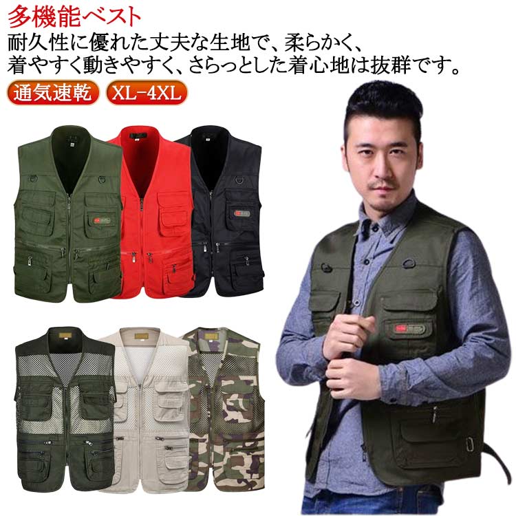 多機能ベスト 登山 撮影用 大きいサイズ 通気性 速乾性 春 夏 秋 冬 春夏 秋冬 メッシュベスト 大きいサイズ 通気速乾 メッシュベスト