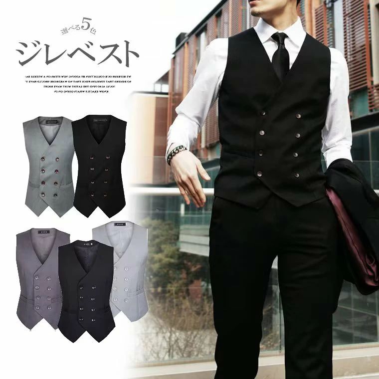 スッキリとしたシルエット!ダブルボタン ジレ メンズ ベスト ス
