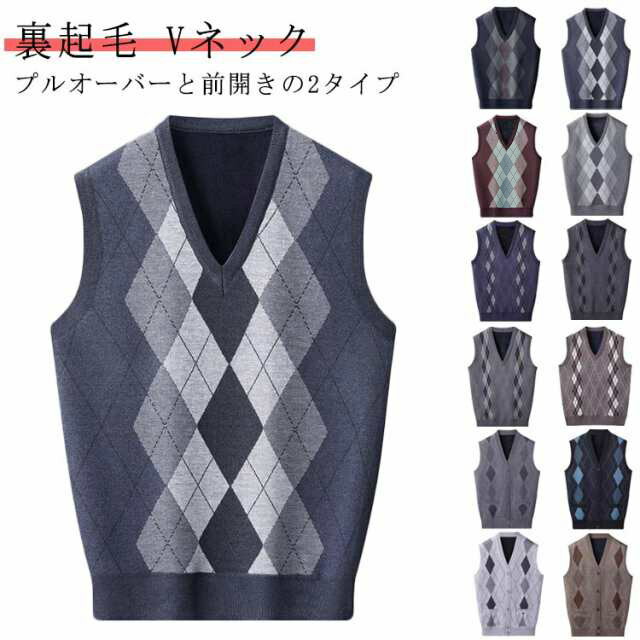 セーター ベスト メンズ ビジネスベスト ニットアーガイル柄 裏起毛 アーガイル柄 vネック ニットベスト カーディガン ニット プレゼント フォーマル トップス プルオーバー カジュアル 秋