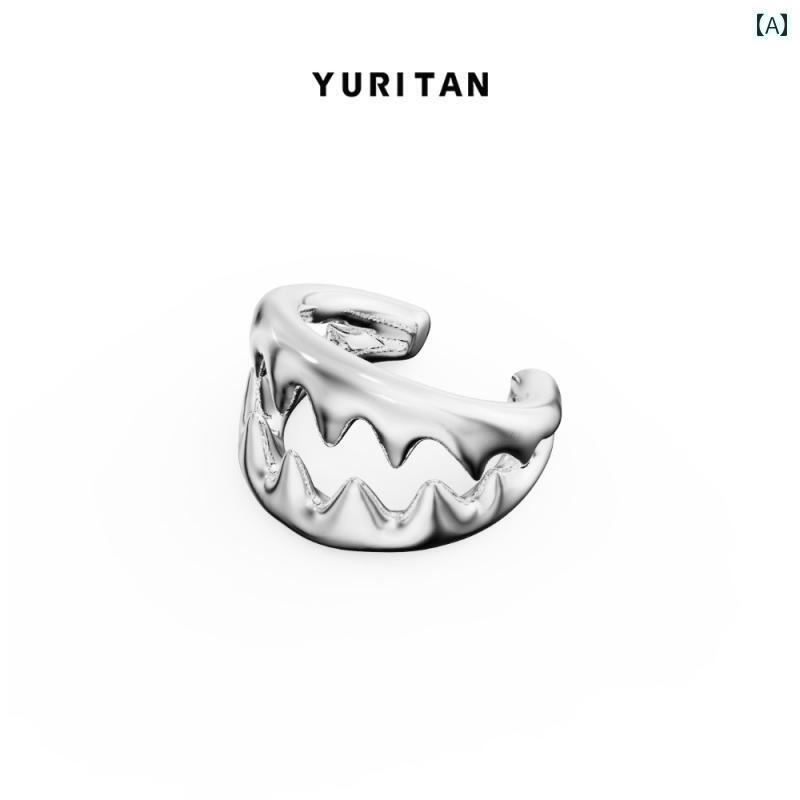 レディース リング 指輪 メンズ カップル 装飾品 小物 アクセサリー 合金 オープン 調節可能 人差し指 個性 カジュアル サメの歯 光沢
