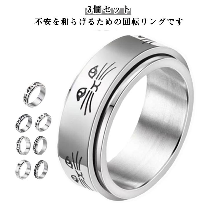 ストレス解消 フィジェットリング スピナーリング 6~12号 不安 緩和 癖対策 猫 月 星 太陽 リラックス ステンレス 指輪 レディース 不安リング 回転リング フィジェット メンズ