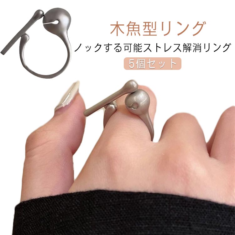 リング 5枚セット 心配 木魚 ストレス解消 ステンレススチール 不安 スピナーリング 指輪 ジュエリー 心のリラックス レディース ファッションアイテム 不安緩和リング