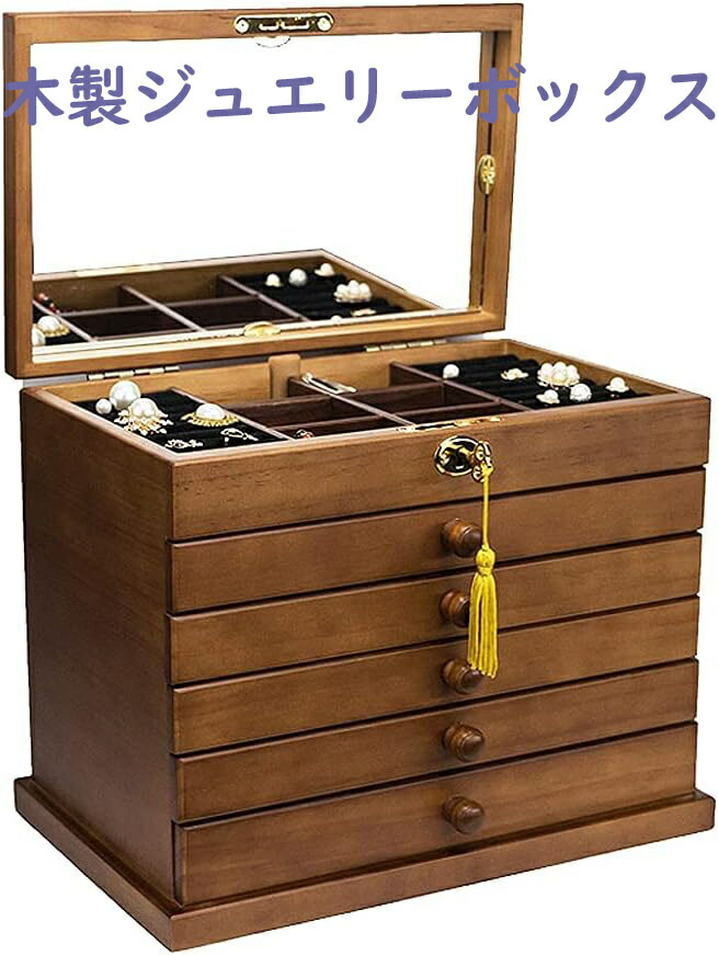 ジュエリーボックス木製 宝石箱 ピアスケースネックレス 収納 小物入れ ボックス6層 鍵付きボックス