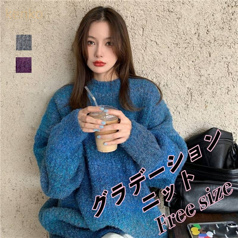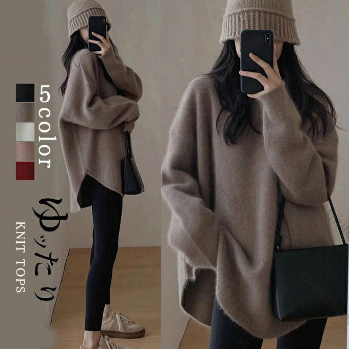 ニット セーター トップス レディース 長袖 大きめ クルーネック ゆったり カジュアル 休日 秋 冬 かっこかわいい 大人可愛い きれいめ シンプル お洒落 大人女子 20代 30代 韓国 10代